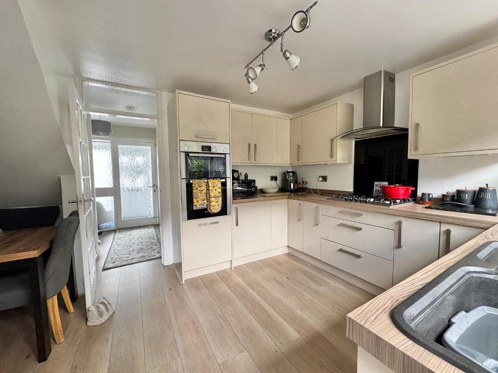 13' 3'' x 10' 10'' (4.04m x 3.32m) With laminate flooring, double glazed UPVC door to rear elevation, double glazed window to rear elevation, central heating radiator, wall and base units to match, sink and drainer, built in double oven, extractor, five ring gas hob and plumbing for washing machine.