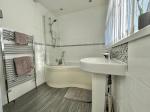 9' 11'' x 6' 0'' (3.03m x 1.84m) With tiled walls, spotlights, chrome heated towel rail, bath, hand wash basin, WC, vinyl flooring, electric shower and double glazed windows to rear elevation.