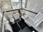 7' 0'' x 6' 3'' (2.15m x 1.93m) With hand wash basin, WC, bath, tiled walls, vinyl flooring, double glazed window to rear elevation, electric heater and chrome heated towel rail.