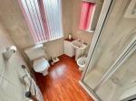 6' 8'' x 5' 8'' (2.05m x 1.73m) With tiled flooring, tiled walls, bidet, WC, hand wash basin, double glazed window to rear elevation, chrome heated towel rail, electric shower within glass panelled cubicle.