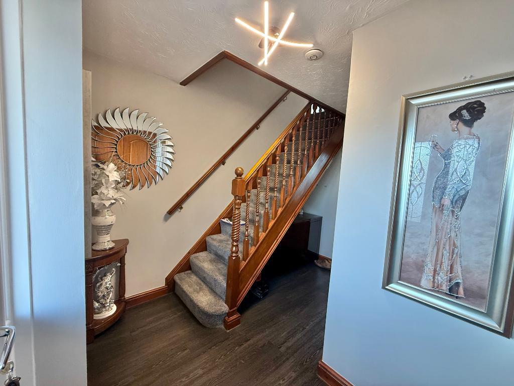 With UPVC double glazed door to front elevation, laminate flooring, central heating radiator, smoke alarm, storage cupboard and single glazed wooden door leading to: