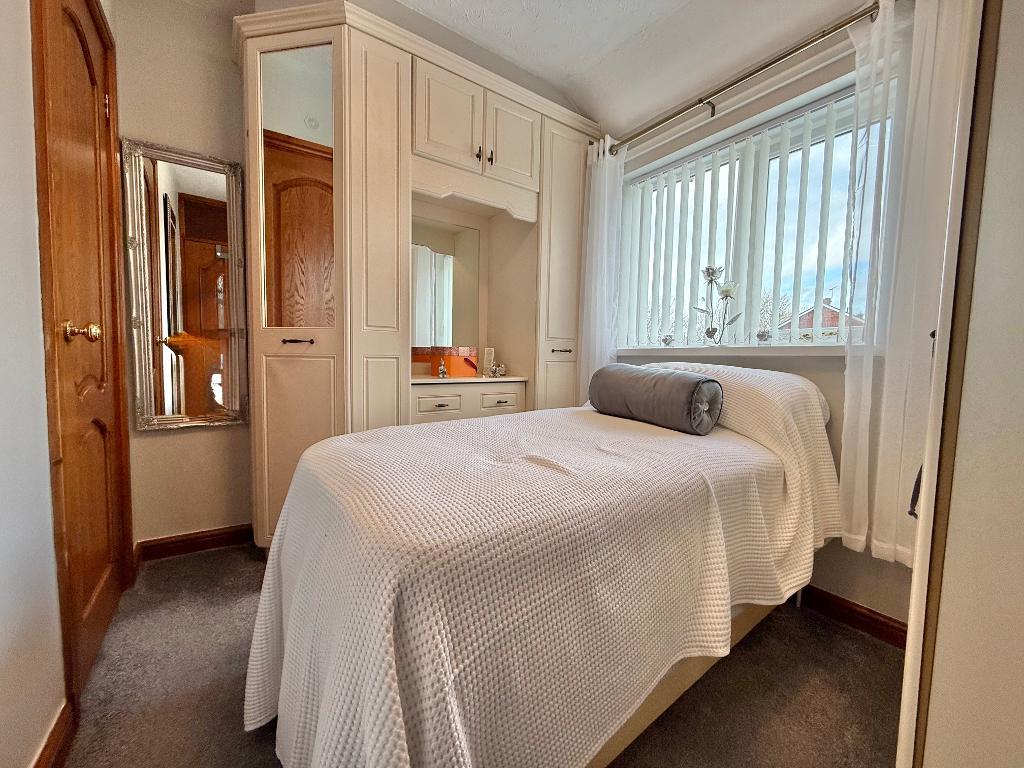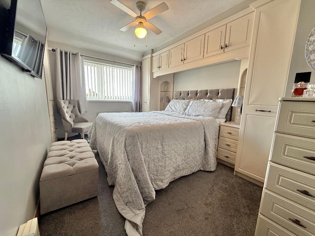 13' 9'' x 9' 2'' (4.21m x 2.8m) With double glazed window to front elevation, built in wardrobes, central heating radiator and storage cupboard.