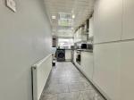 15' 4'' x 6' 0'' (4.69m x 1.85m) With tiled flooring, central heating radiator, double glazed window to rear elevation, double glazed UPVC door to rear elevation, plumbing for washing machine and dishwasher, integrated fridge freezer, storage housing boiler, gas hob, electric oven, extractor, wall and base units to match, splashback tiling and sink, drainer with mixer tap and wooden door leading to: