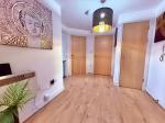 With laminate flooring, smoke alarm, storage heater, intercom and storage cupboard housing immersion heater.